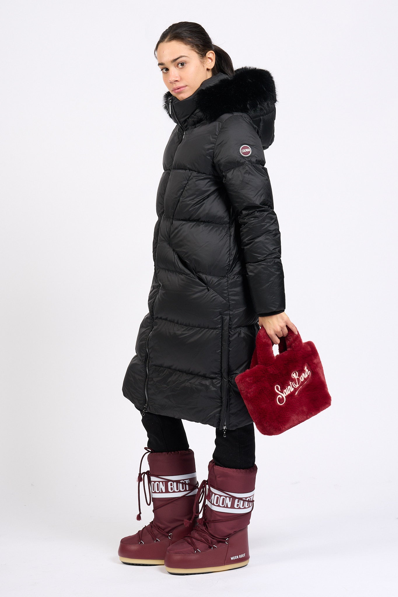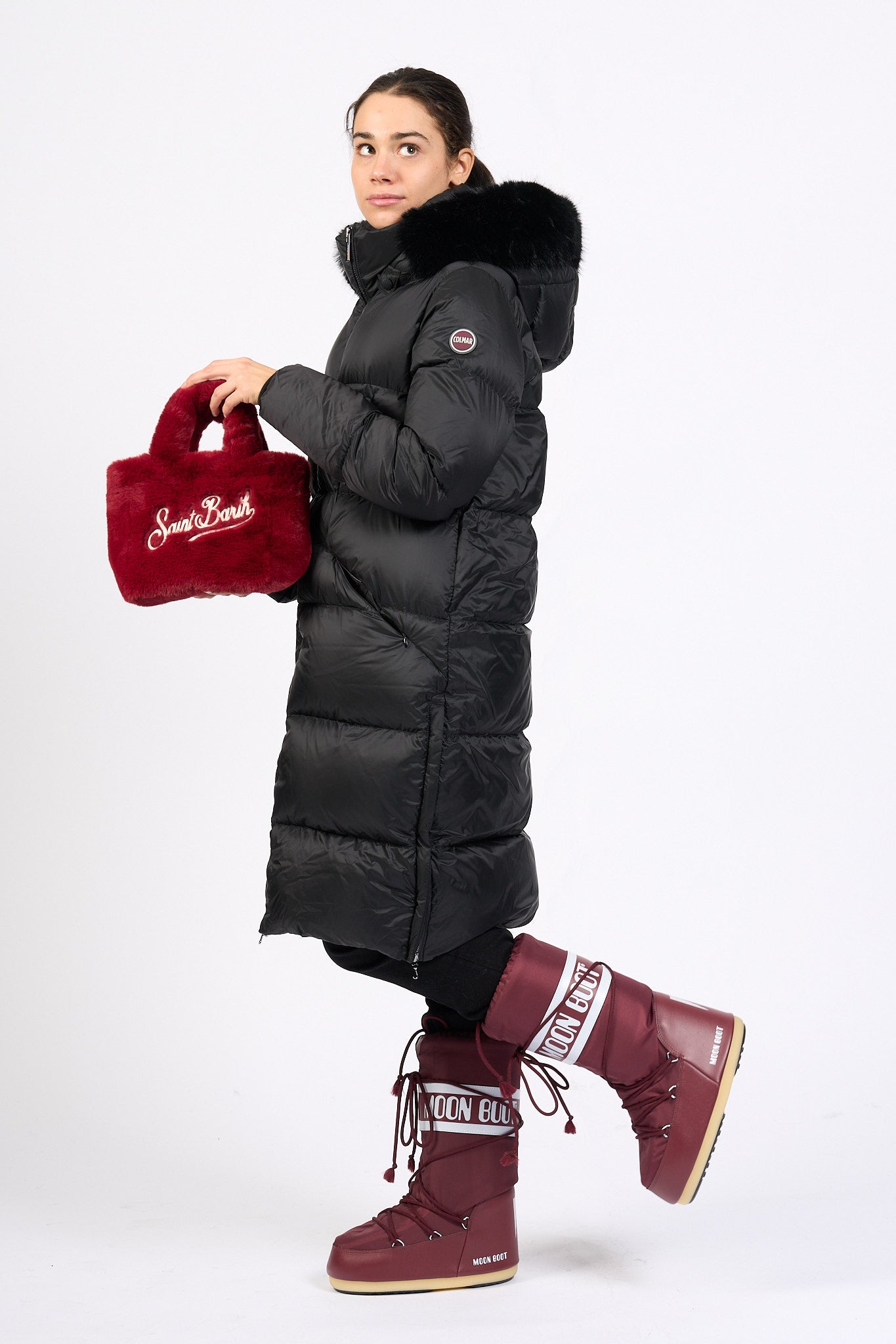 - Cappuccio removibile con bordo in eco pelliccia tono su tono.
