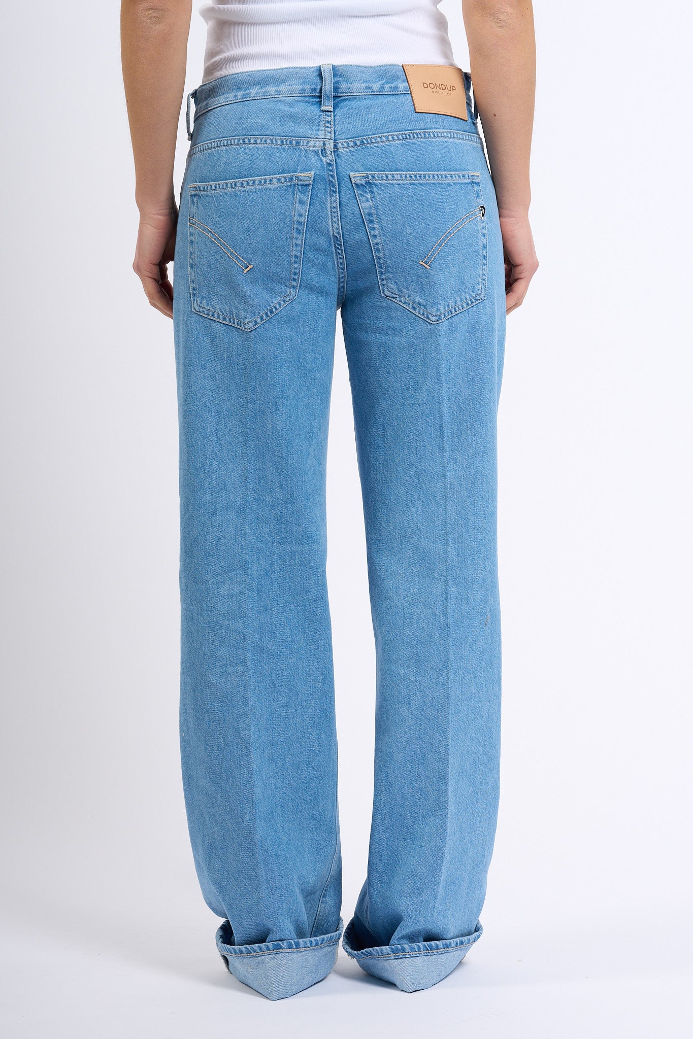 - Colore denim lavaggio chiaro pulito.
