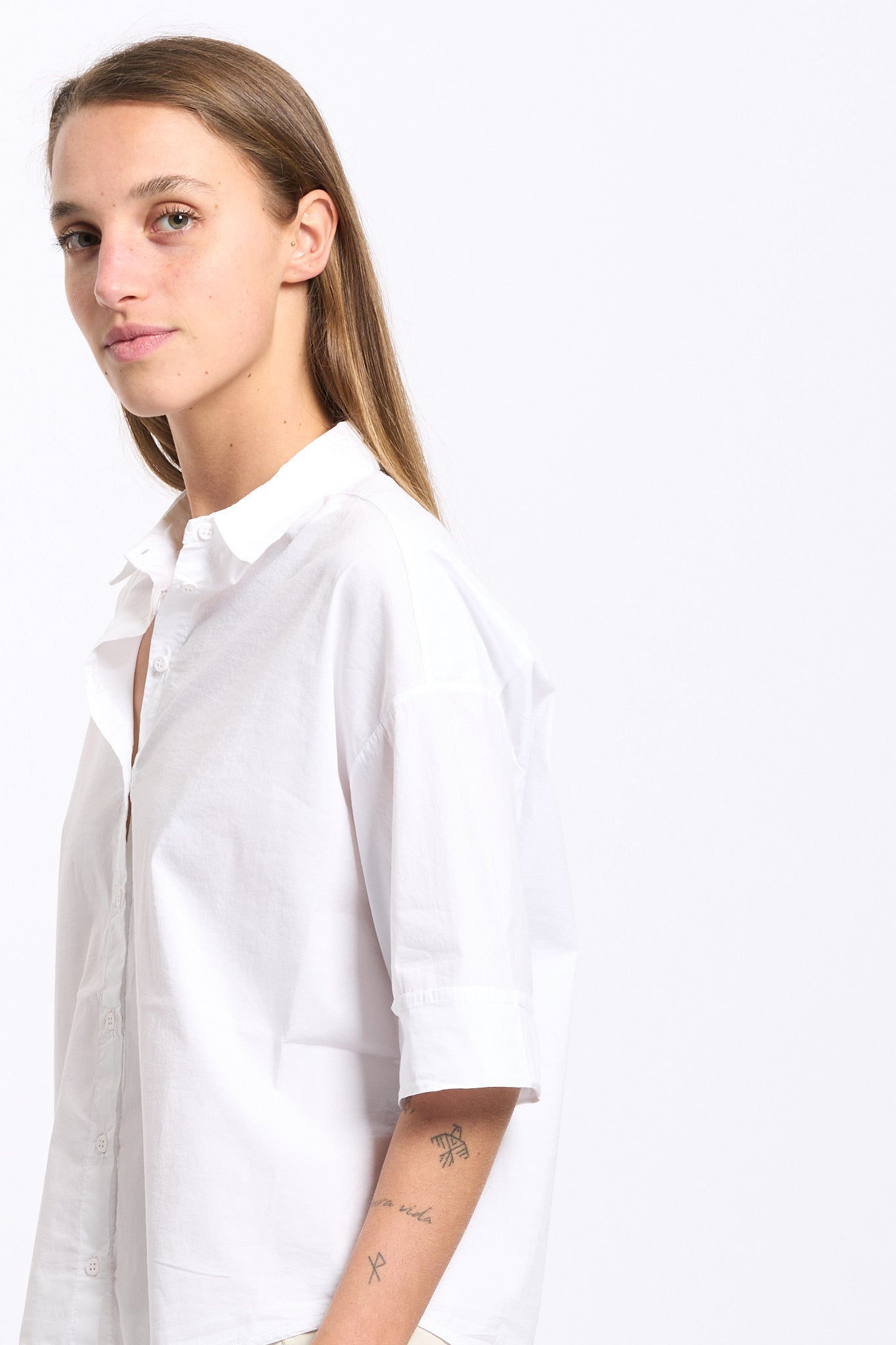 - Camicia in leggero popeline di cotone stretch bianco.
