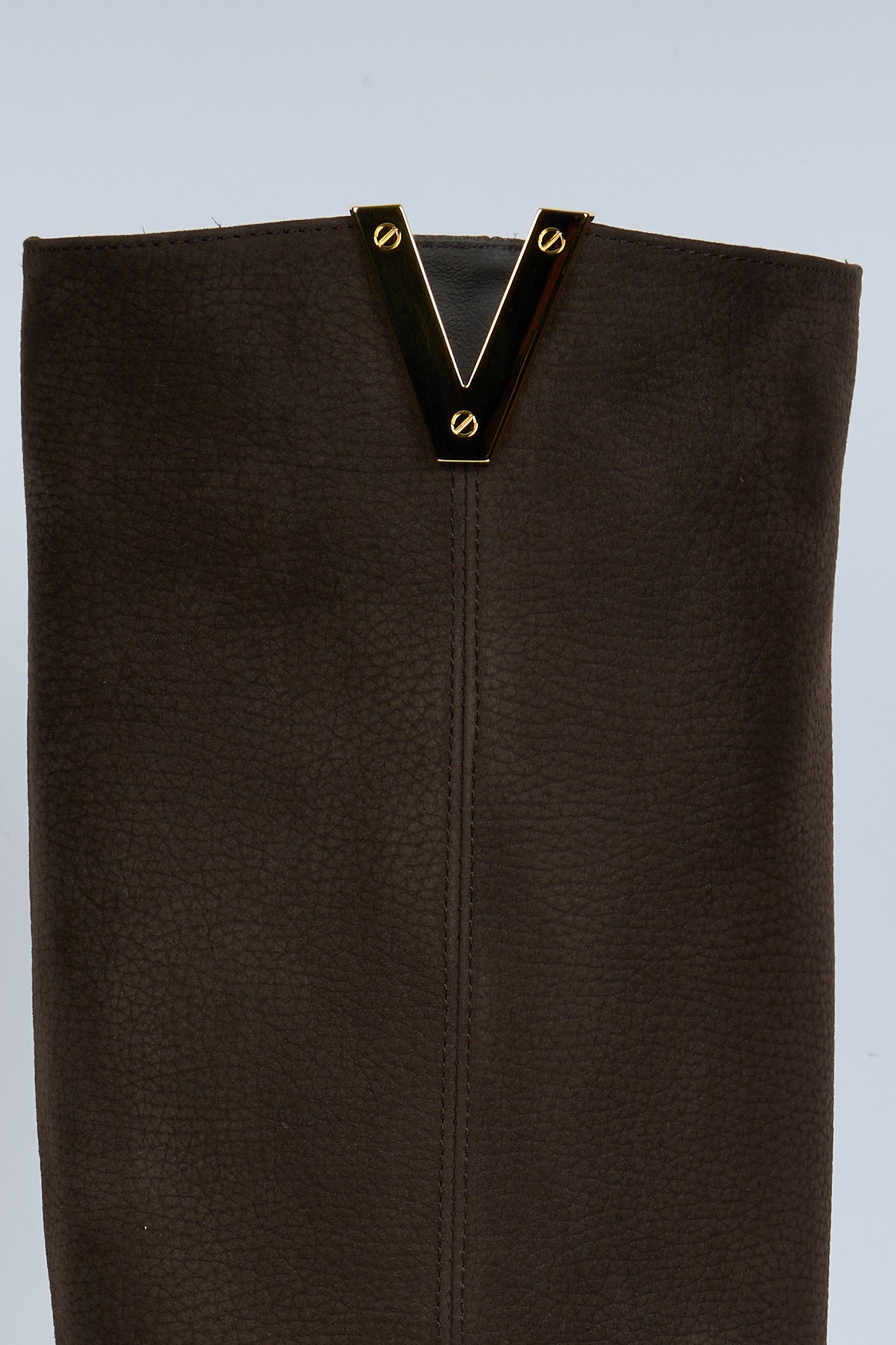 - Inserto a V sul profilo laterale in metallo dorato.
