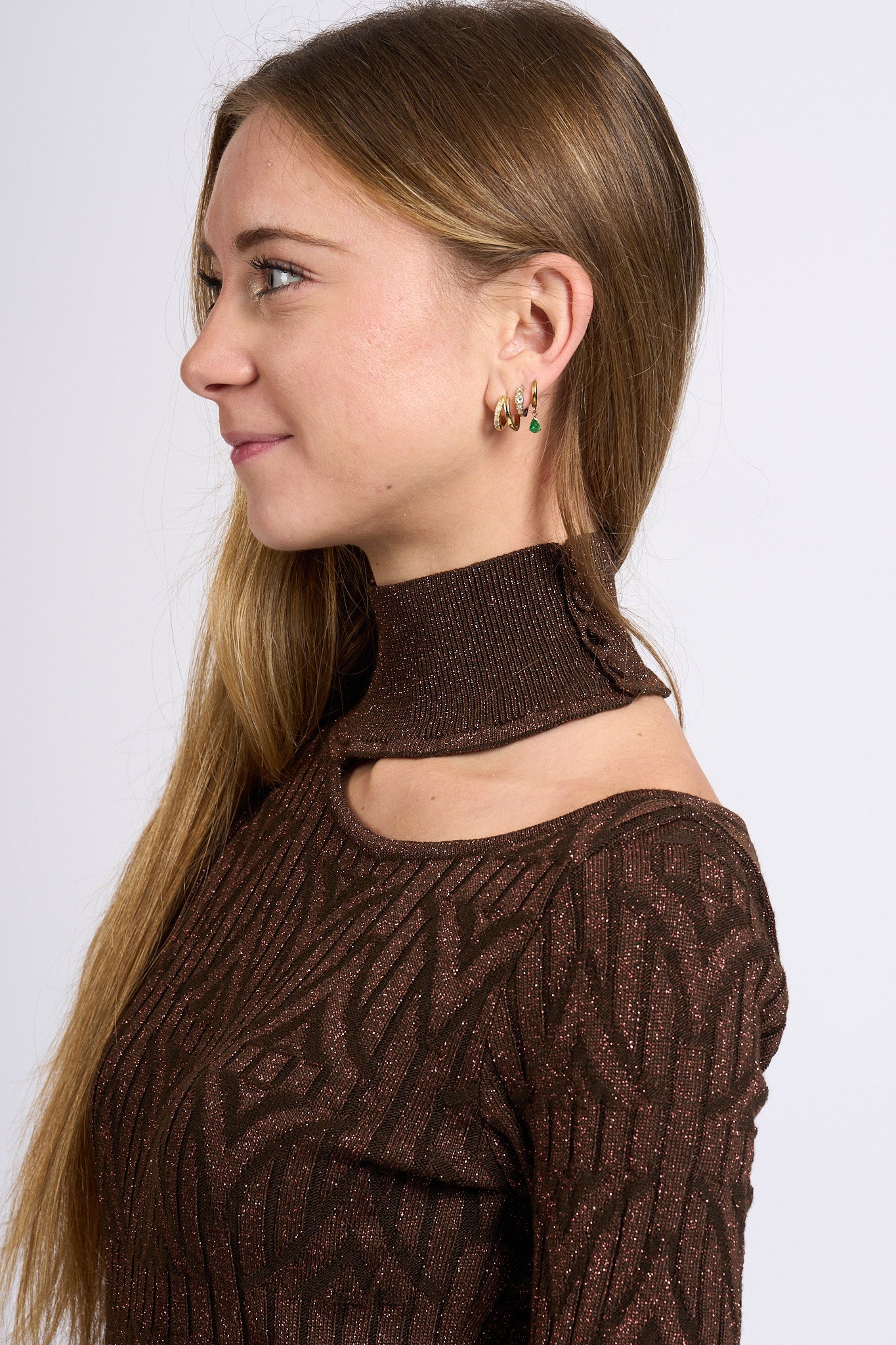 - Colore marrone con inserto in lurex tono su tono.