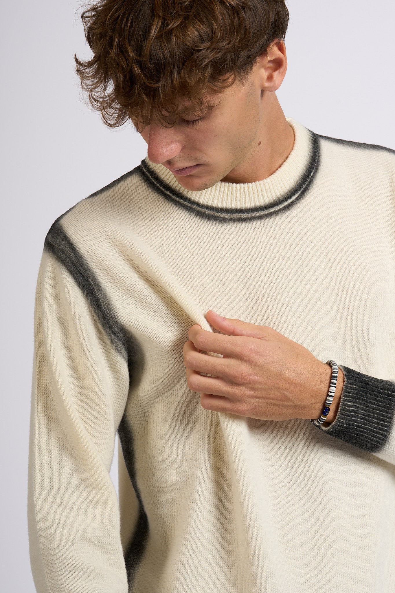- Effetto aerografato nero su scollo, giro manica e polsi.