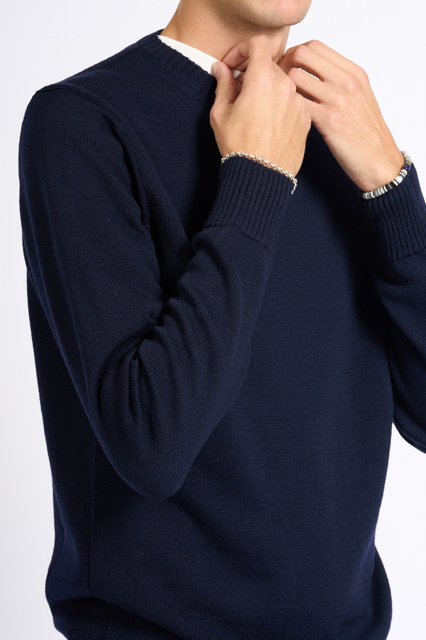 maglia giro merino blu uomo