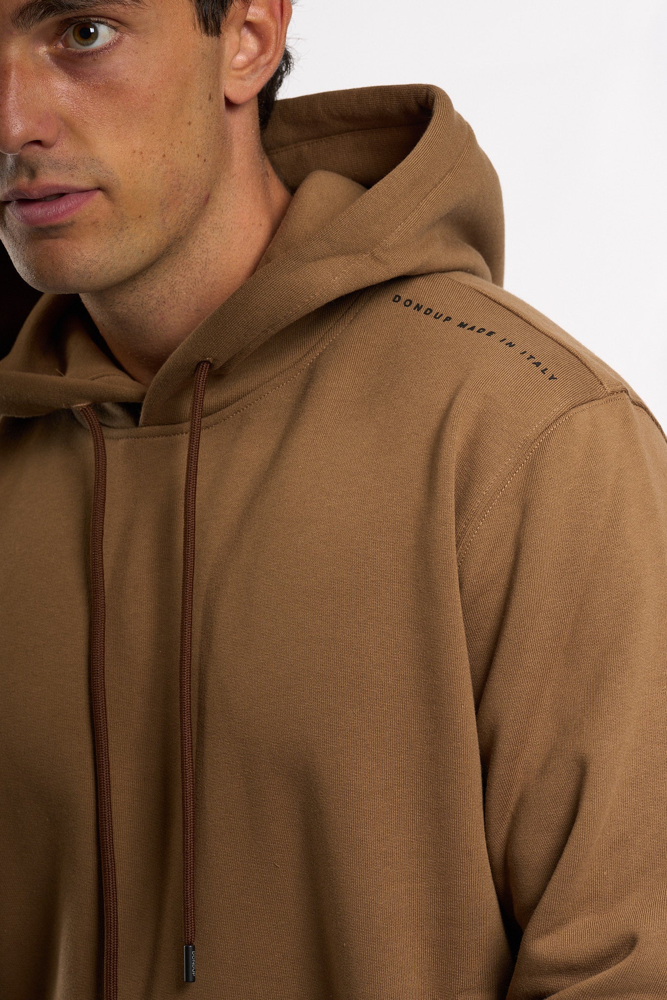 felpa cappuccio caramello uomo