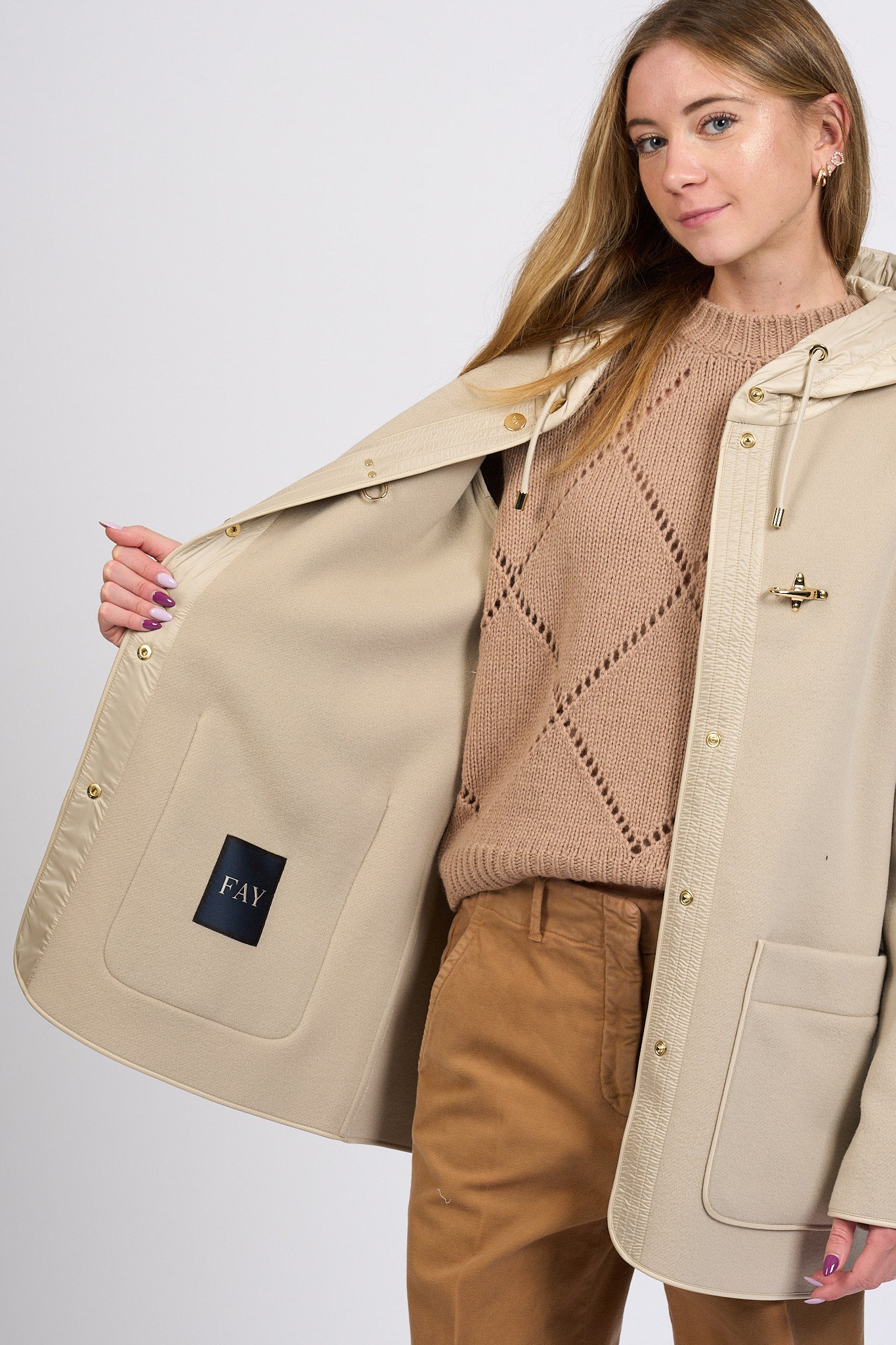 - Chiusura con automatici personalizzati e l'iconico gancio Fay.