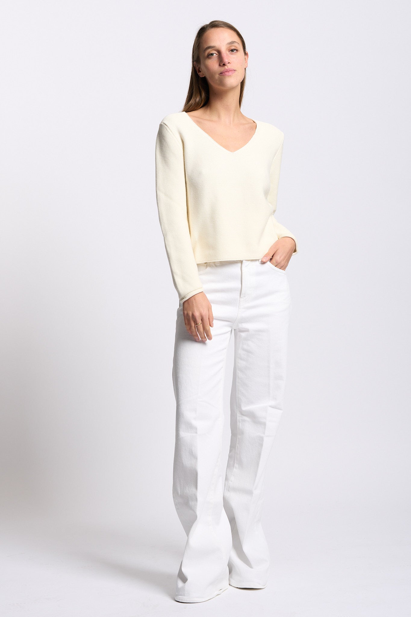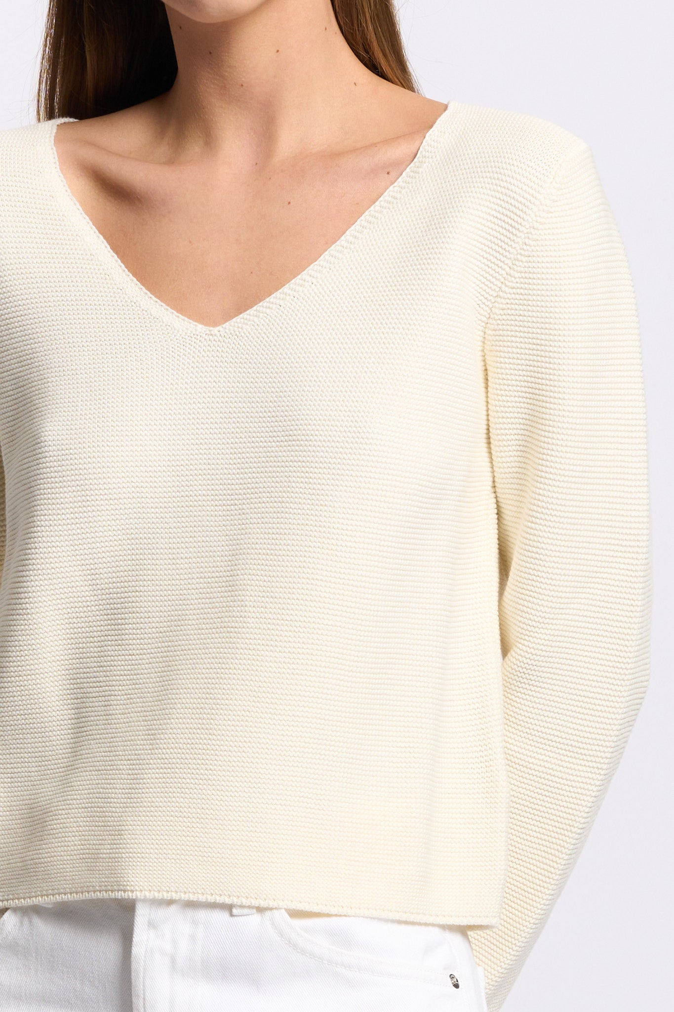 maglia scollo v avorio donna