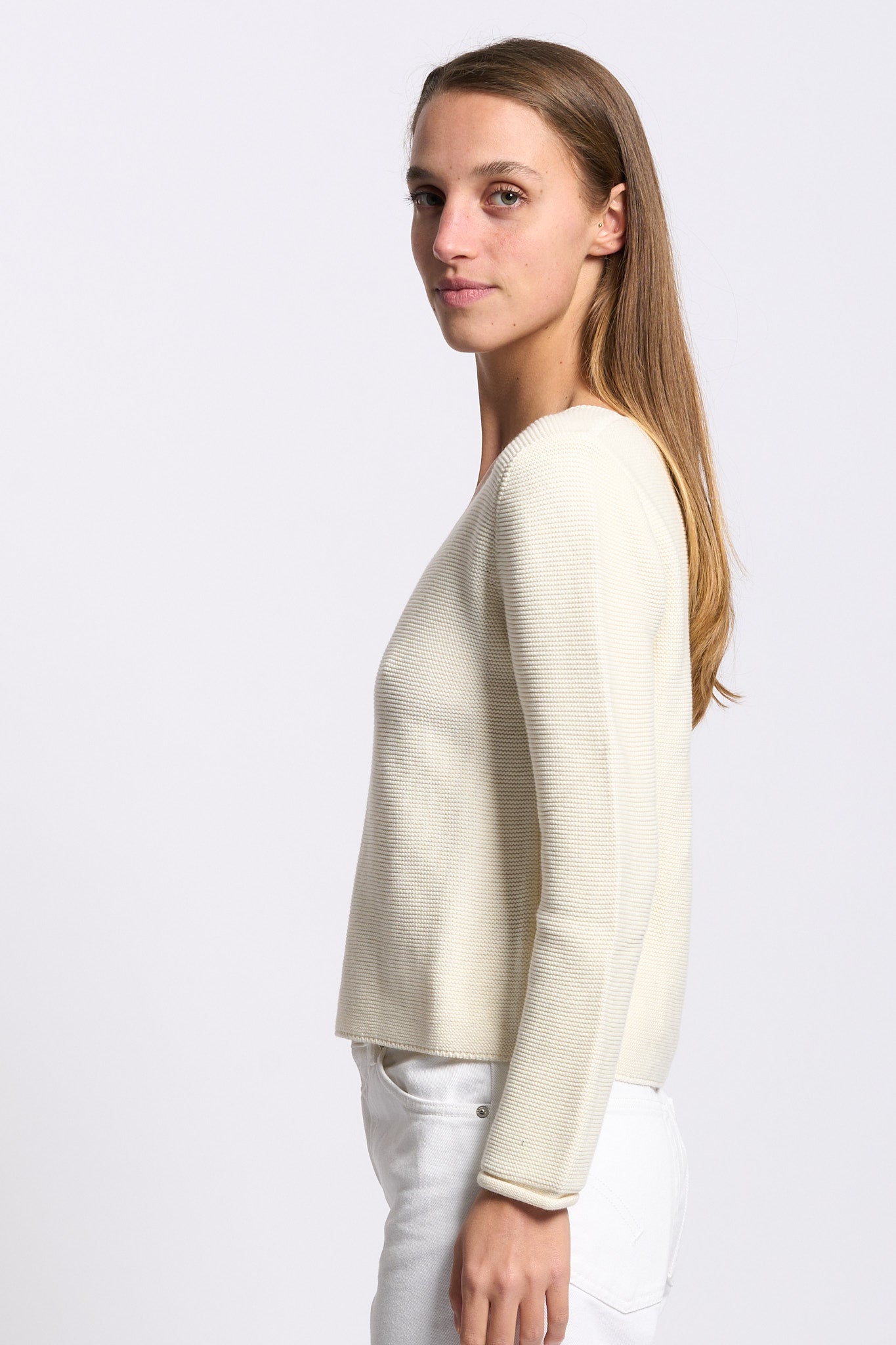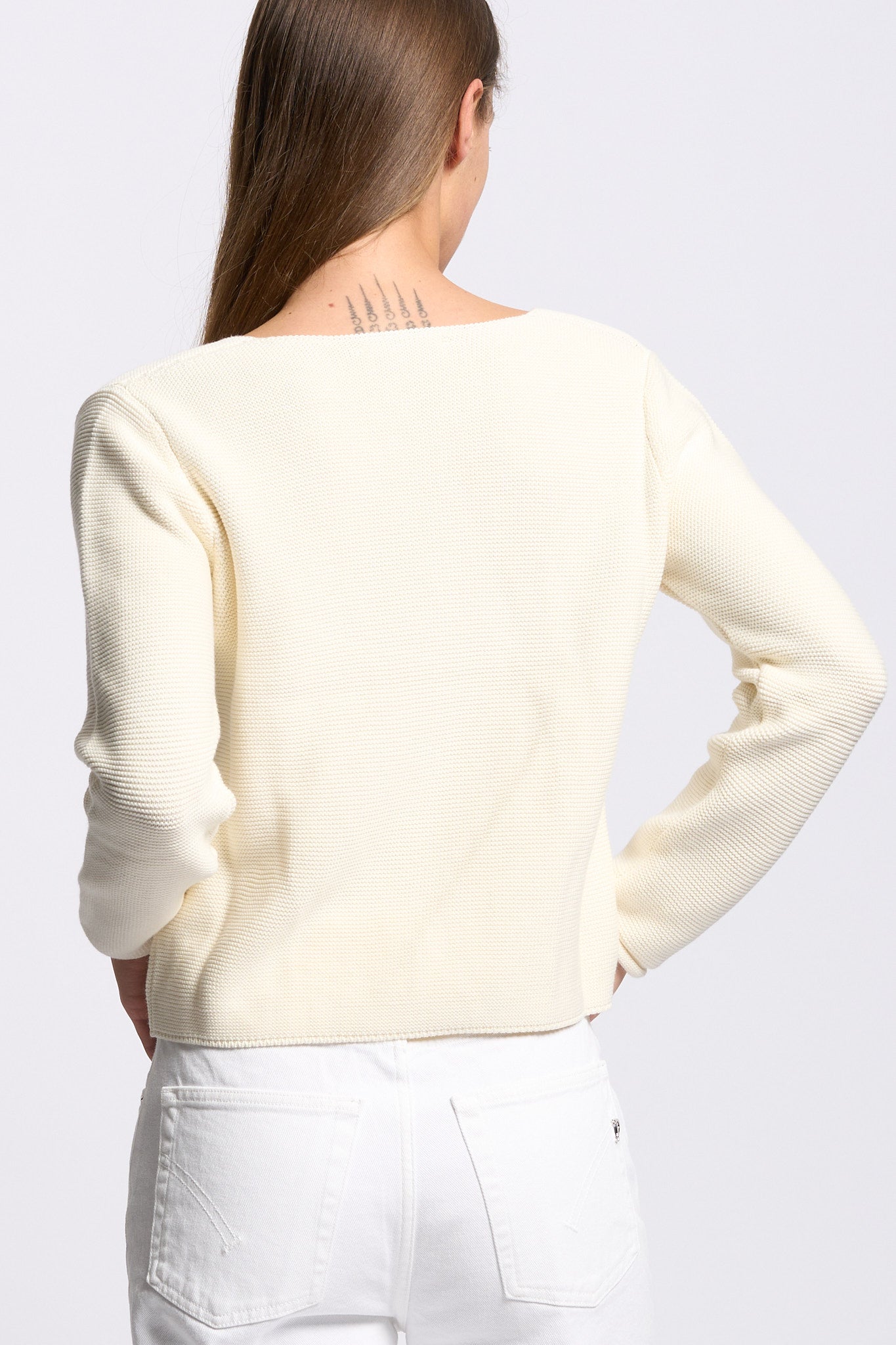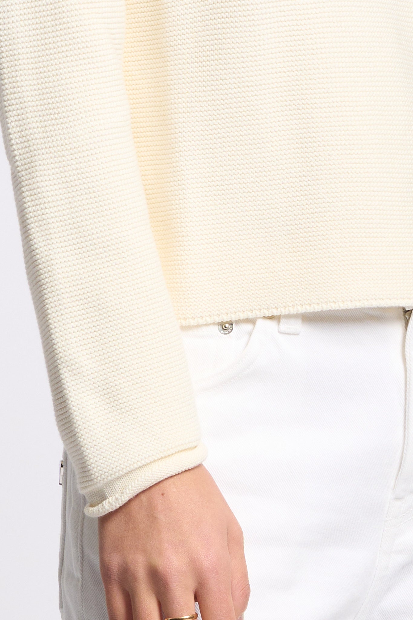 - Maglia in cotone lavorata a grana di riso.