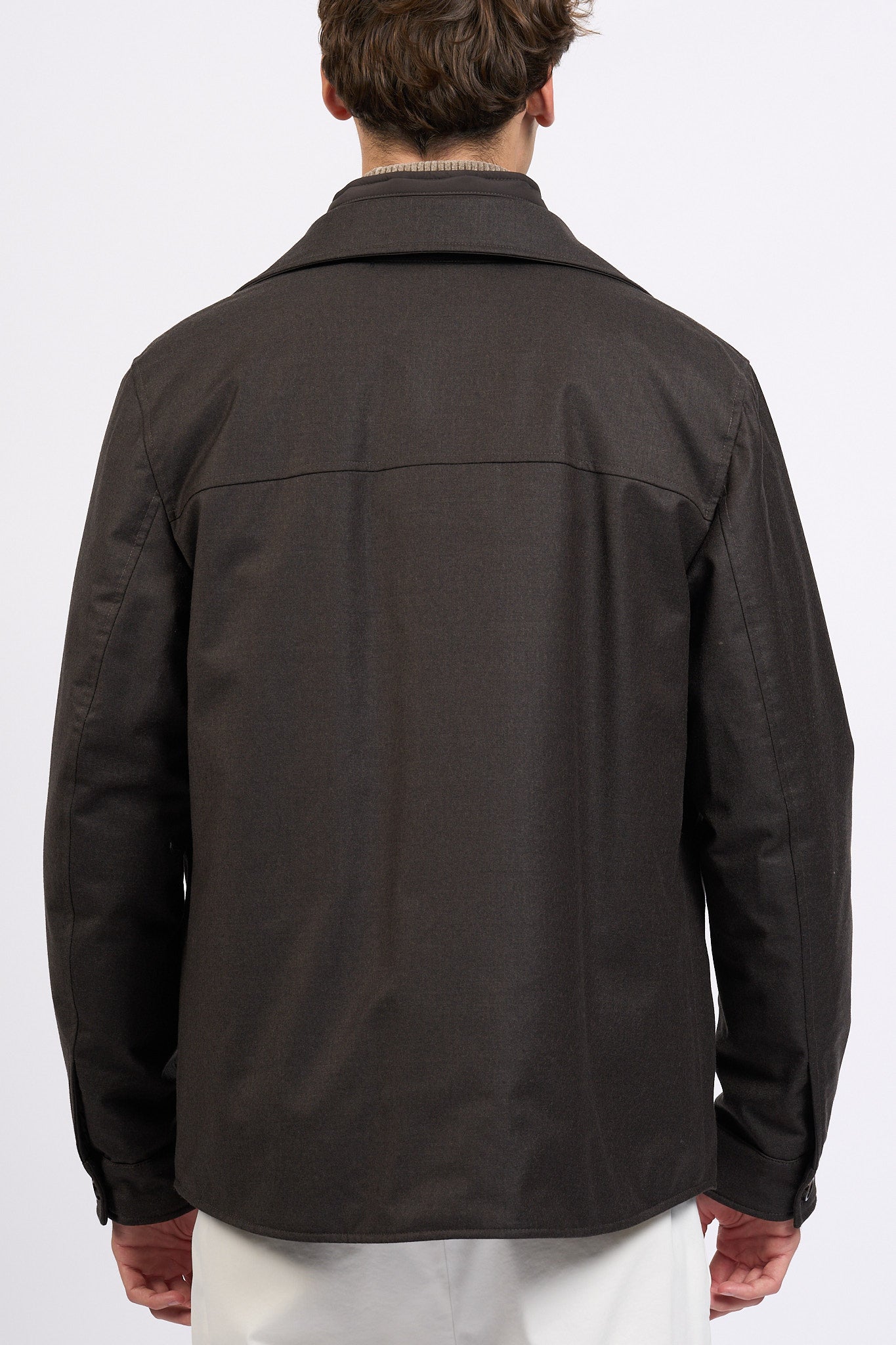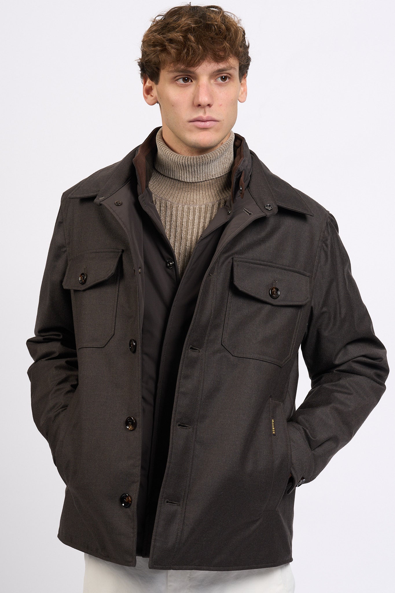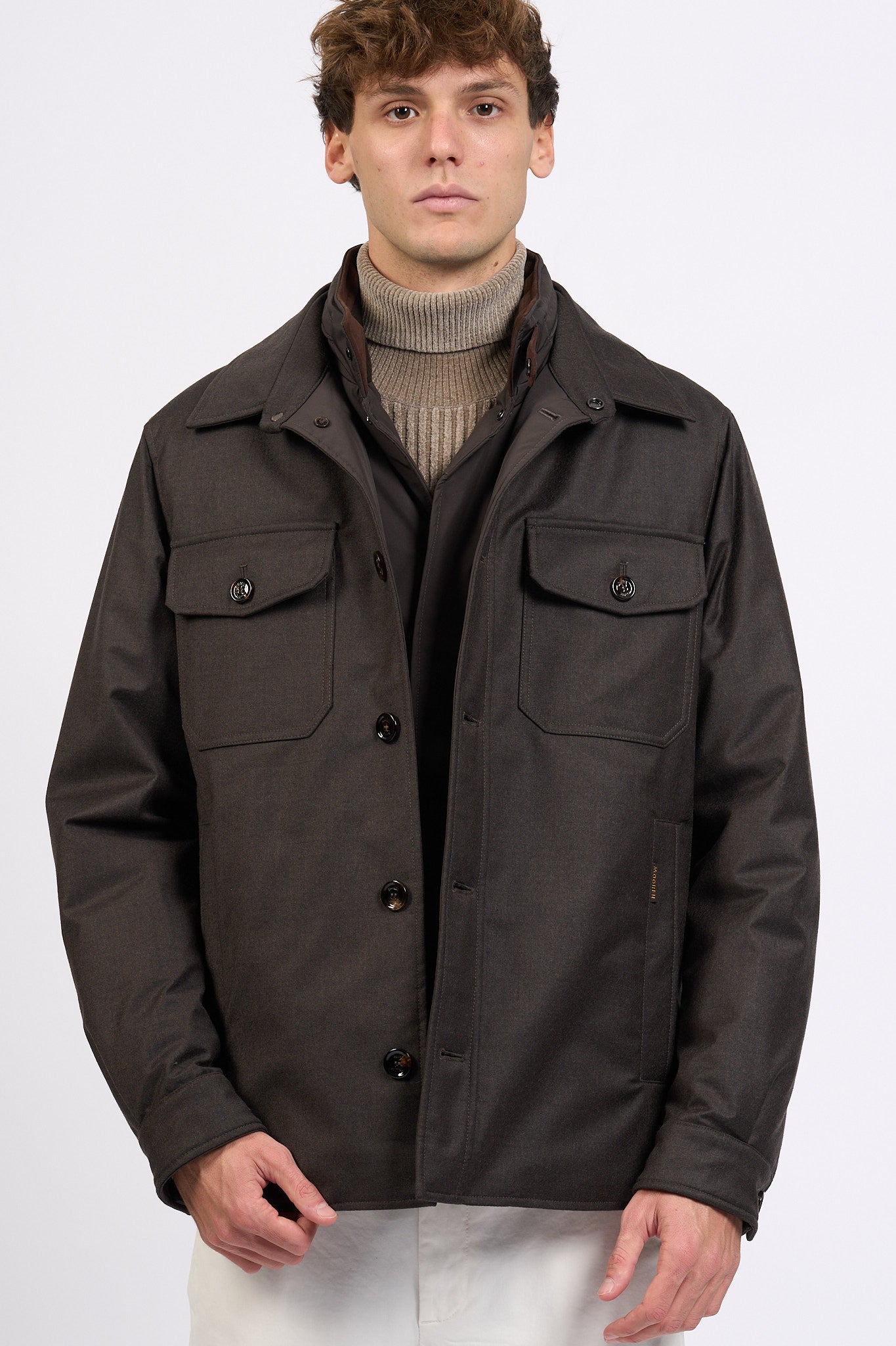 - Due tasche sul petto applicate, tasche laterali a filetto con bottone a pressione.