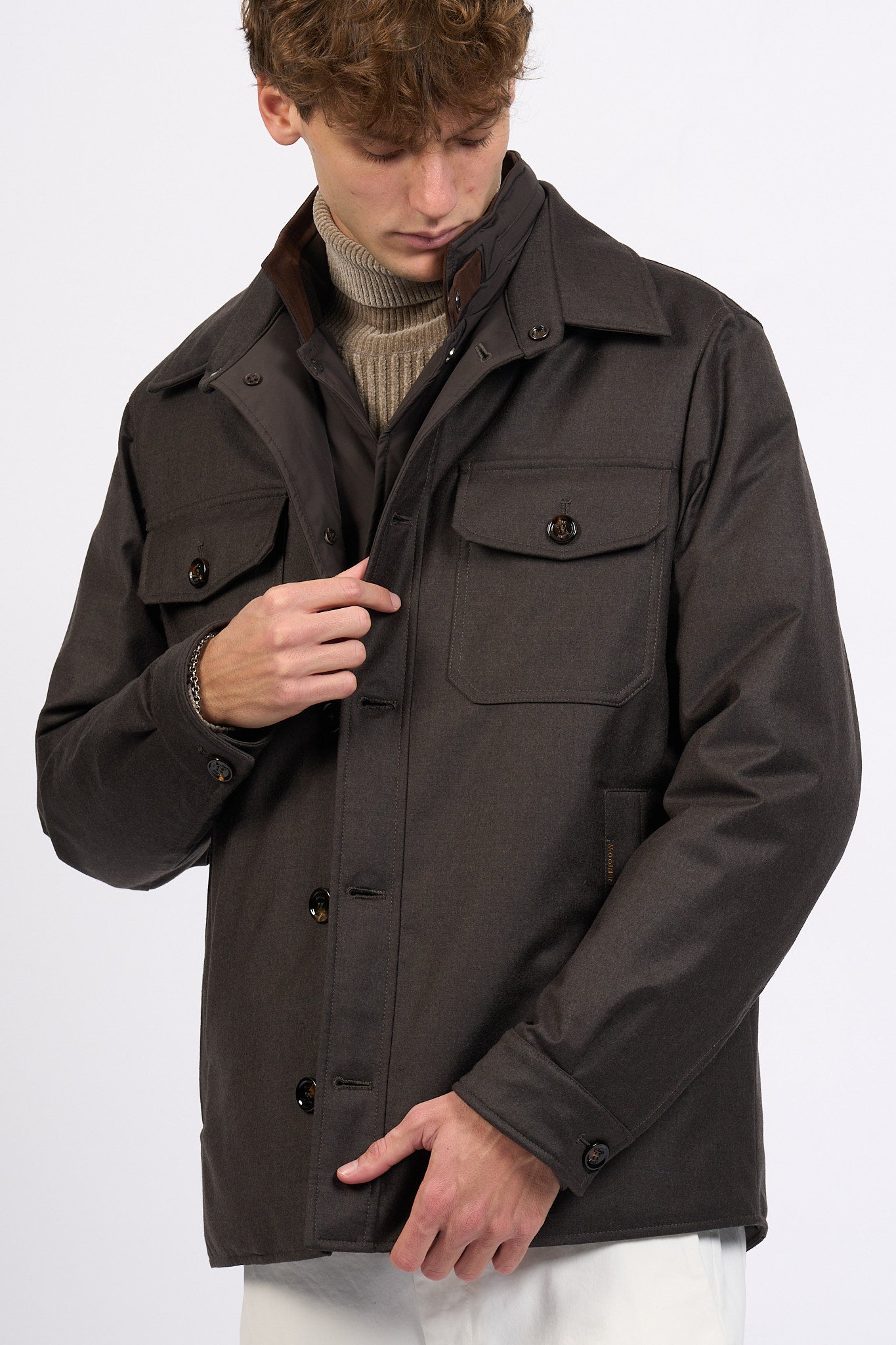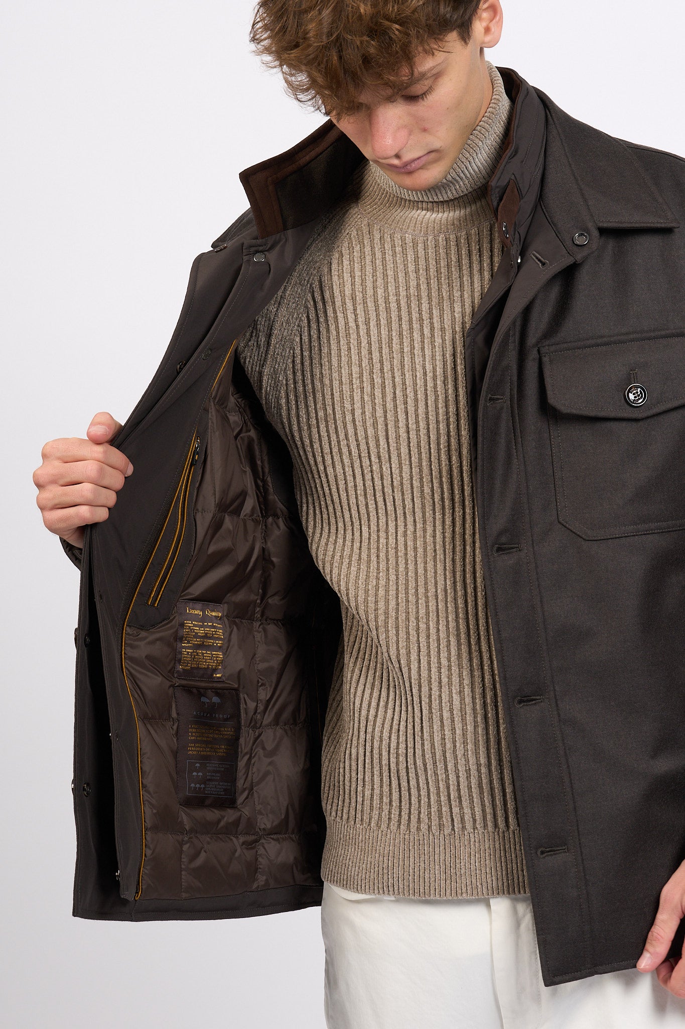 - Realizzata in flanella di lana vergine mista a cashmere accoppiata a membrana traspirante e waterproof, leggera e confortevole.