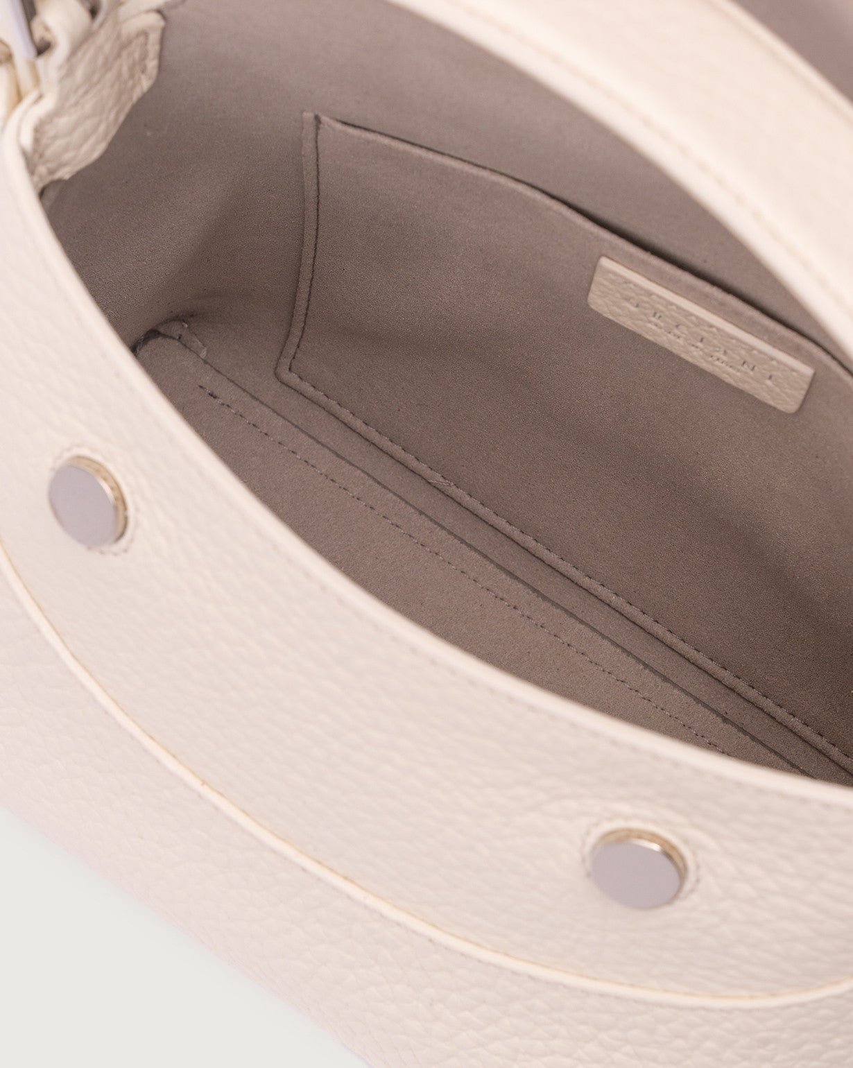- Tracolla in pelle, removibile, con moschettoni silver.
